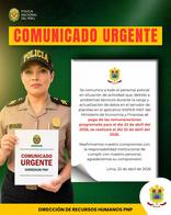 🚨COMUNICADO OFICIAL | La DIRREHUM PNP informó que, debido a inconvenientes técnicos durante la carga y actualización de datos en el servidor de planillas del aplicativo SISPER-MEF, el pago de remuneraciones previsto para el 22ABR2026 (HOY) se reprograma para el 23ABR2026.