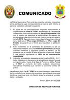 Mediante comunicado, la Dirección de Recursos Humanos PNP informó que las variaciones advertidas en las planillas de pago de ABRIL 2026 responden a la aplicación de la Ley N° 32561, que modifica el D.Leg N° 1133.