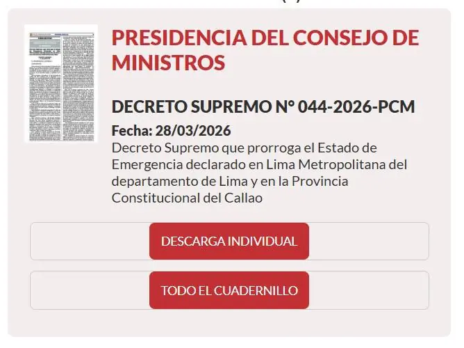 Mediante el D.S. 044-2026-PCM, el Ejecutivo dispuso la prórroga del Estado de Emergencia en Lima Metropolitana y el Callao por el término de treinta (30) días calendario, a partir del 30MAR2026.