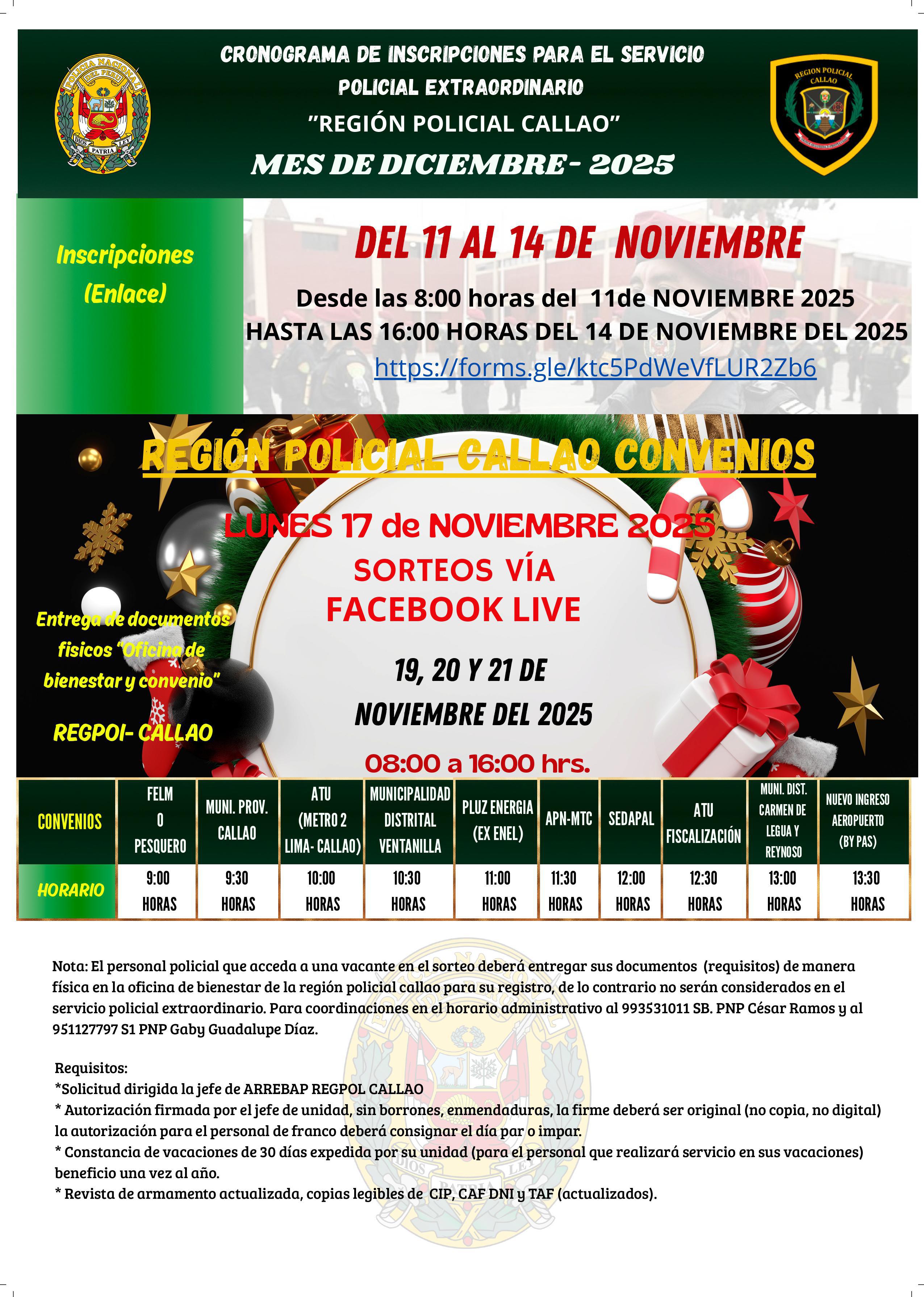 Servicio policial extraordinario por convenio en la "REGIÓN POLICIAL CALLAO" para el mes de DICIEMBRE 2025.