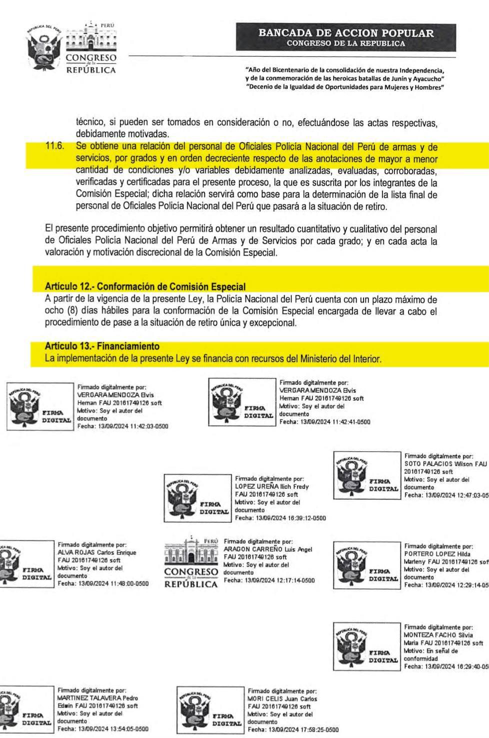 En el marco de las reuniones multisectoriales contra la extorsión, el tercer vicepresidente del Congreso anunció que hoy se debatirá el Proyecto de Ley N.° 8923, el cual propone el pase al retiro excepcional de miles de efectivos policiales.