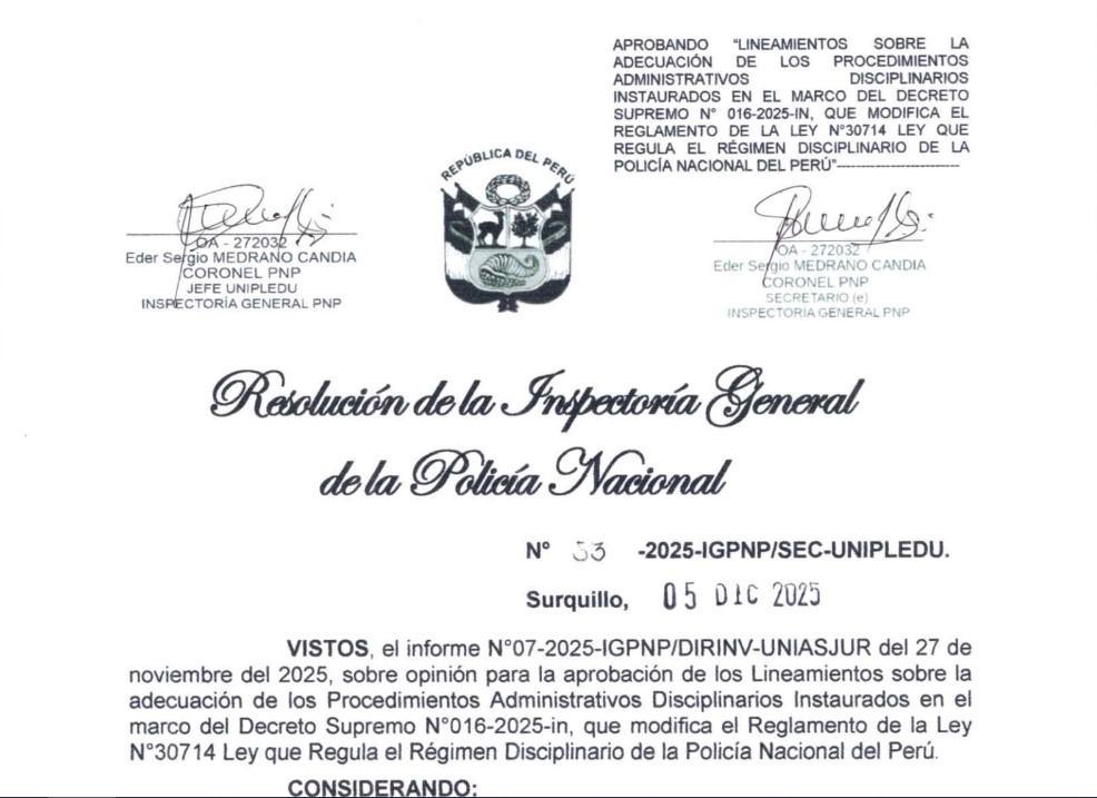 IG PNP publica los lineamientos que deben seguir los órganos disciplinarios e investigados, tomando en cuenta el NUEVO reglamento del régimen disciplinario.