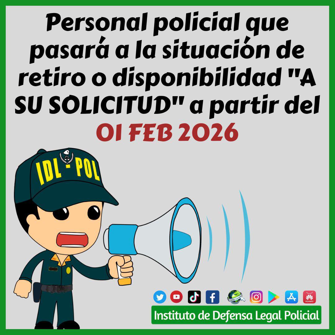 Relación nominal del personal de Suboficiales PNP de Armas y de Servicios, que pasarán de la situación policial de actividad a la situación policial de retiro y/o disponibilidad por la causal "A SU SOLICITUD" a partir del 01FEB2026.