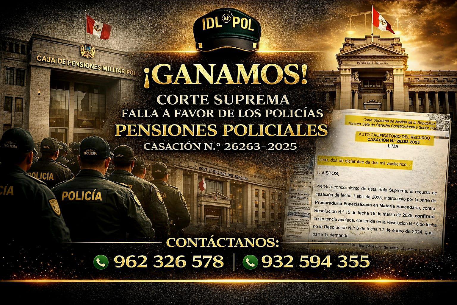 IDL-POL logra fallo favorable en la Corte Suprema por pensión policial.