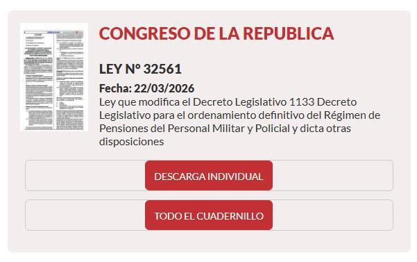 ✅YA ES OFICIAL. Se publicó la Ley N.° 32561, que modifica el Decreto Legislativo 1133 y actualiza el régimen de pensiones del personal militar y policial.
