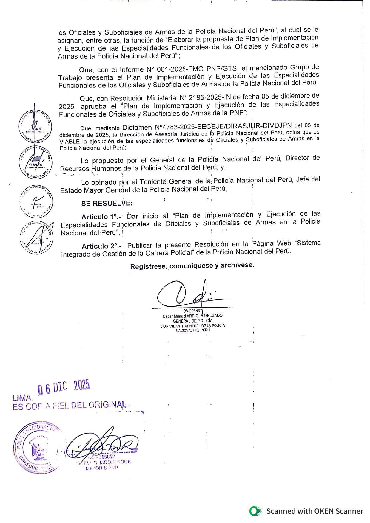 Mediante la R.C.G. N.° 999-2025-CG PNP/SECEJE-DIRREHUM, de fecha 06DIC2025, se dispuso el inicio del “Plan de Implementación y Ejecución de las Especialidades Funcionales” para Oficiales y Suboficiales de Armas de la PNP. 👮♂️📌
