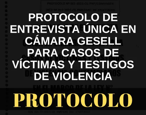 El presente protocolo tiene como finalidad ser un instrumento normativo que oriente, asista, fortalezca y uniformice la intervención de los psicólogos forenses PNP en la Entrevista Única en Cámara Gesell en. Ia atención de víctimas o testigos de violencia contemplados en el marco de la Ley N° 30364 en las diferentes fases y pasos descritos en el presente, evitando la revictimización; así como promover el trabajo interdisciplinario e interinstitucional con los demás actores del debido proceso.